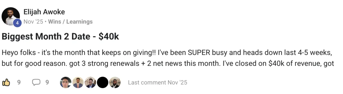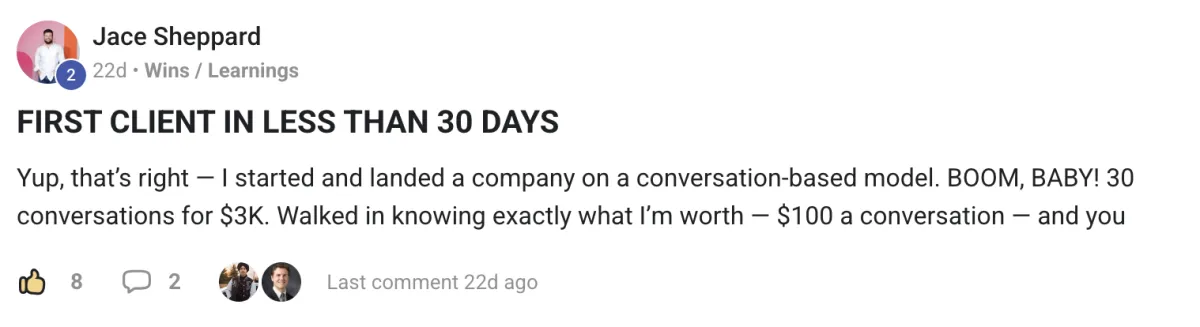 "My back against the wall, I was about to be put on a PIP and I didn't want to put all of my eggs in one basket. The most valuable thing has been learning how to use tools to get clients for myself rather than just for an employer."
